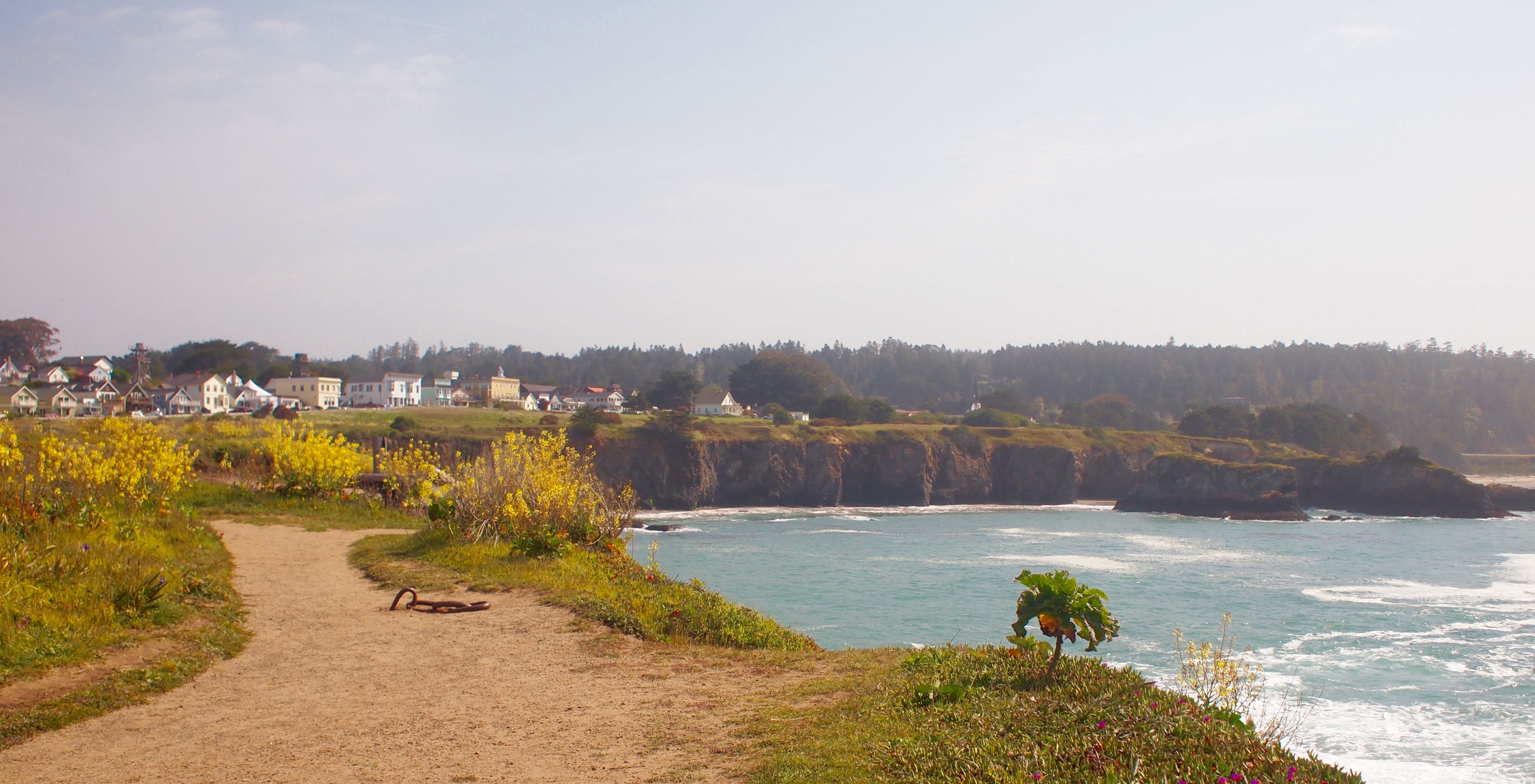 샌프란시스코 출발, 북쪽 101번 프리웨이로 달리다가 20번 서쪽 국도로 FORT BRAGG 방향으로 가면 1번 해안도로가 나온다. 해안도로 뷰를 바라보며, 남쪽으로 달리면 나오는 Medocino 오늘은 main st 에서 하루 차 세워놓고 잤다.